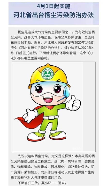 障公眾身體健康,全面打贏藍天保衛(wèi)戰(zhàn),近日,河北省人民政府發(fā)布2020年1號政府令《河北省揚塵污染防治辦法》,該辦法將從2020年4月1日起正式施行。