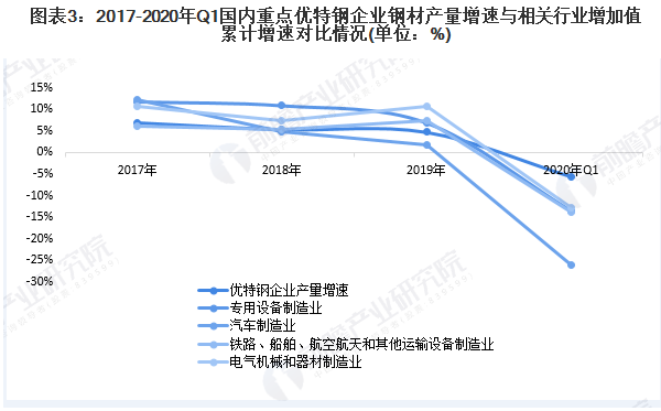 特鋼產業是我國制造業發展的重要產業基礎。數據顯示,我國重點優特鋼企業鋼材產量增速與其關聯行業的變化密切相關。