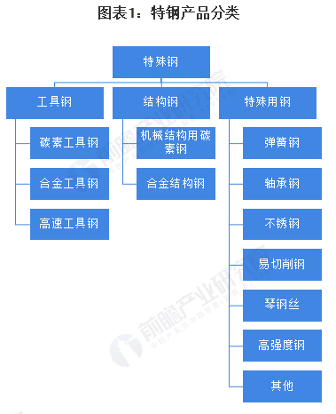 鋼可以分為普鋼和特鋼兩大類型,其中,特鋼即特殊鋼,是指那些由于成分、結構、生產工藝特殊而具有特殊物理、化學性能或者特殊用途的鋼鐵產品,屬于傳統鋼鐵產業的一個分支,與普鋼相對應。特殊鋼產品種類豐富,根據用途來分類,特鋼可分為:結構鋼(如:合金結構鋼、_碳素結構鋼)、工具鋼(如:合金工具鋼、碳素工具鋼和高速工具鋼)和特殊用鋼(如彈簧鋼、不銹鋼、軸承鋼和高溫合金等)。