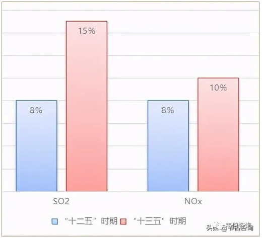 圖表 3:“十二五”和“十三五”時期SO2、NOx減排目標對比